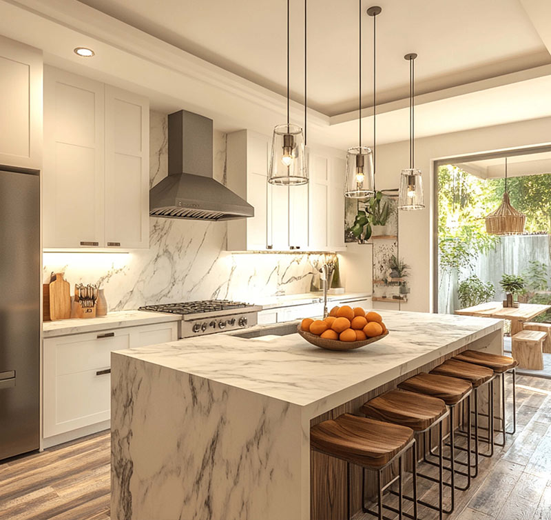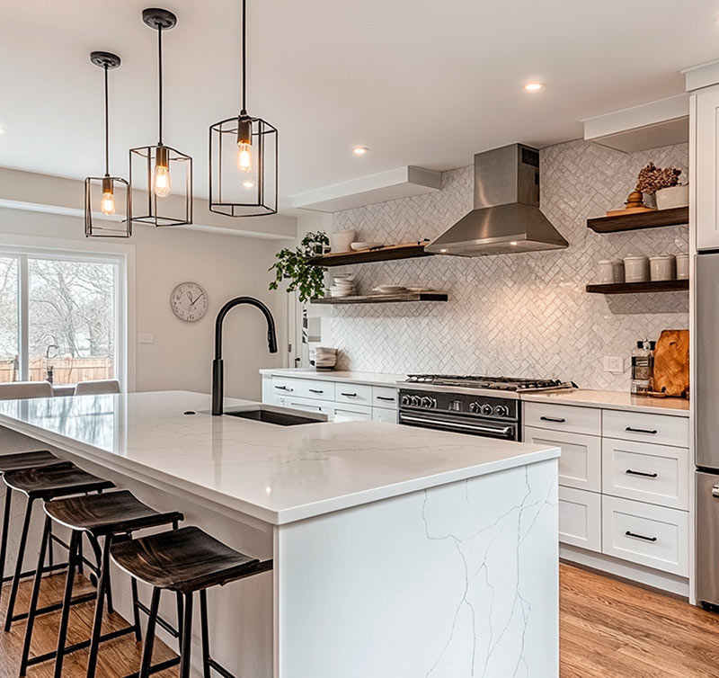 Granite, quartz, marble, and more. Durable surfaces that elevate your kitchen’s aesthetic.