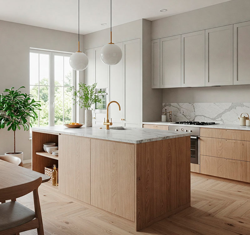 We can do either. If you want a simple upgrade, we keep your current layout. For a more transformative result, we can redesign the space for better flow, storage, and functionality.